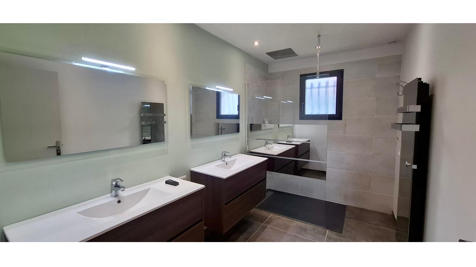 Dans le coin nuit, vous trouverez 3 chambres avec placards, une salle d’eau avec double vasques et un toilette séparé.
