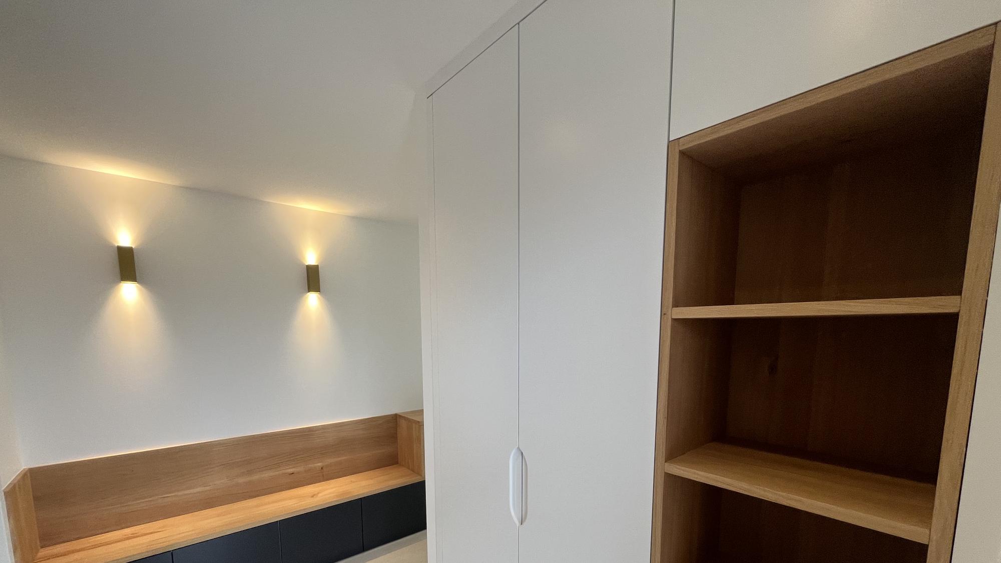 Elle est composée d’une entrée avec son dressing et son meuble d’assise sur mesure, d’un séjour avec une cuisine équipée d’un mobilier sur mesure, d’un cellier-buanderie attenant, de 4 chambres (ou 3 chambres et 1 bureau), dont 1 suite parentale avec dressing et salle d’eau privative, d’une salle de bain, et de 2WC.